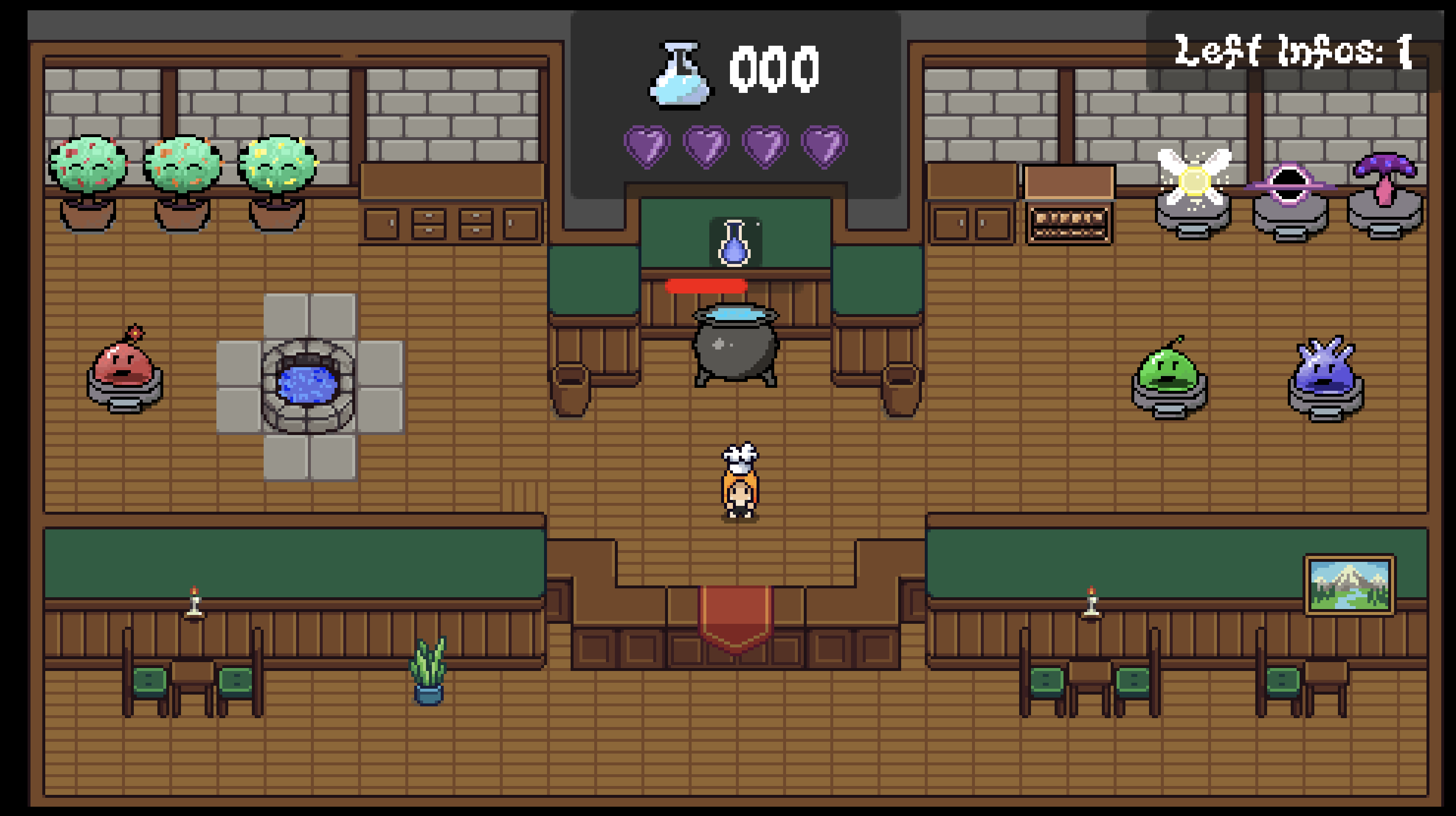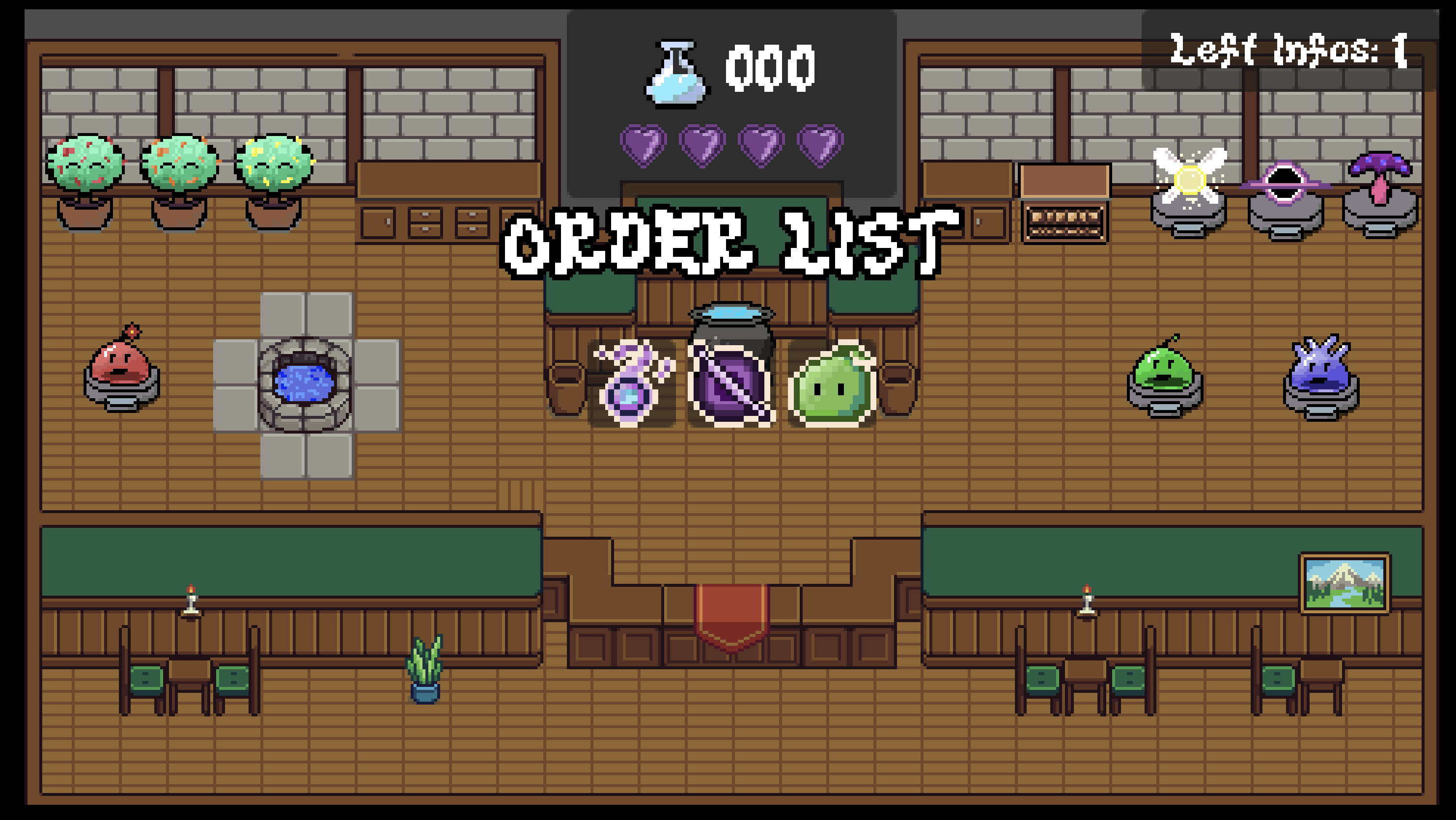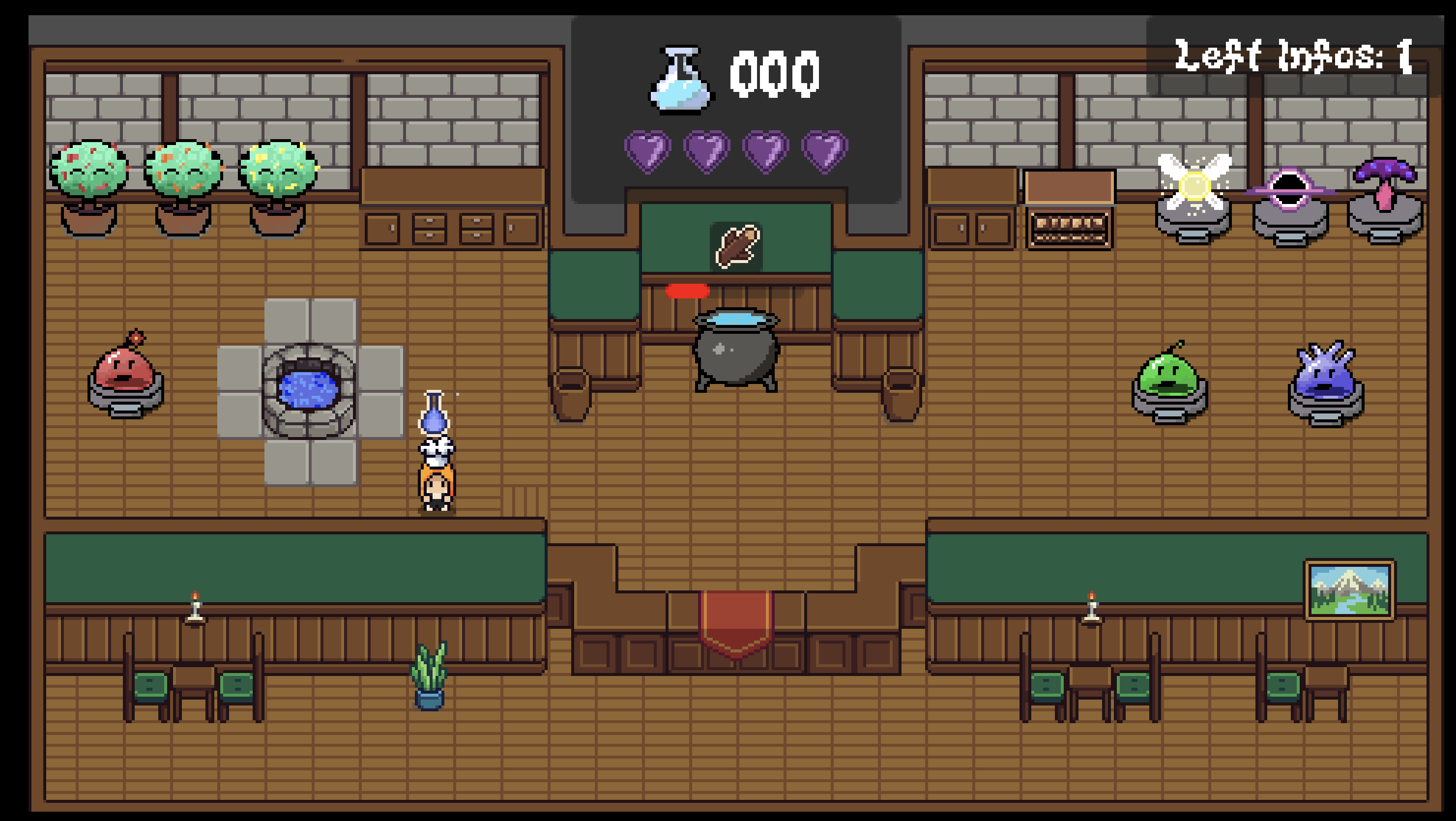 - Brew the potion: Add the ingredients to your cauldron. Order matters! If you mix them in the wrong order, the potion won't work and your loose a Life , you only have 4 loose all , you are Game Over.