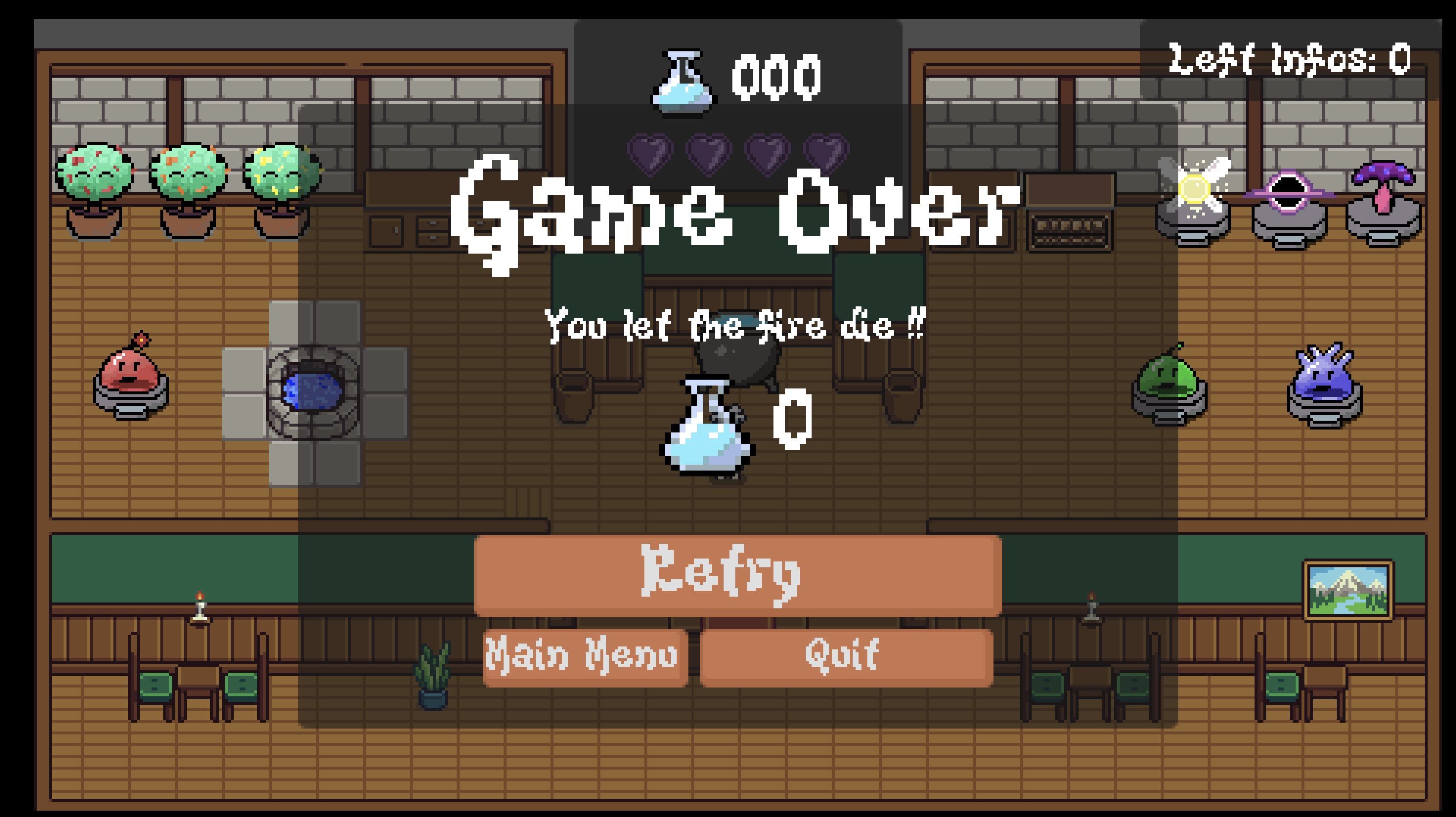 I learnt a lot from doing pixel art, UI and sounds. It's been an interesting journey these past few days.I hope the game isn't too bad, even though it's small and not entirely original.